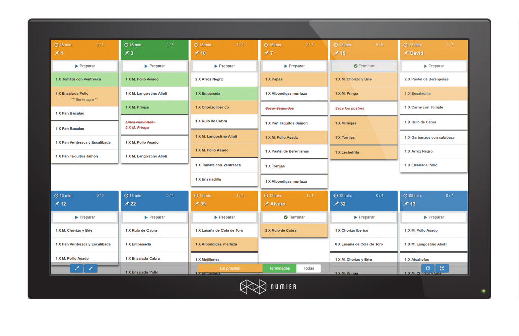 Dile adi贸s a las impresoras de tickets ruidosas y a los papeles perdidos o manchados de grasa. El Numier KDS (Kitchen Display System) es una pantalla inteligente para cocina que revoluciona el flujo de trabajo: